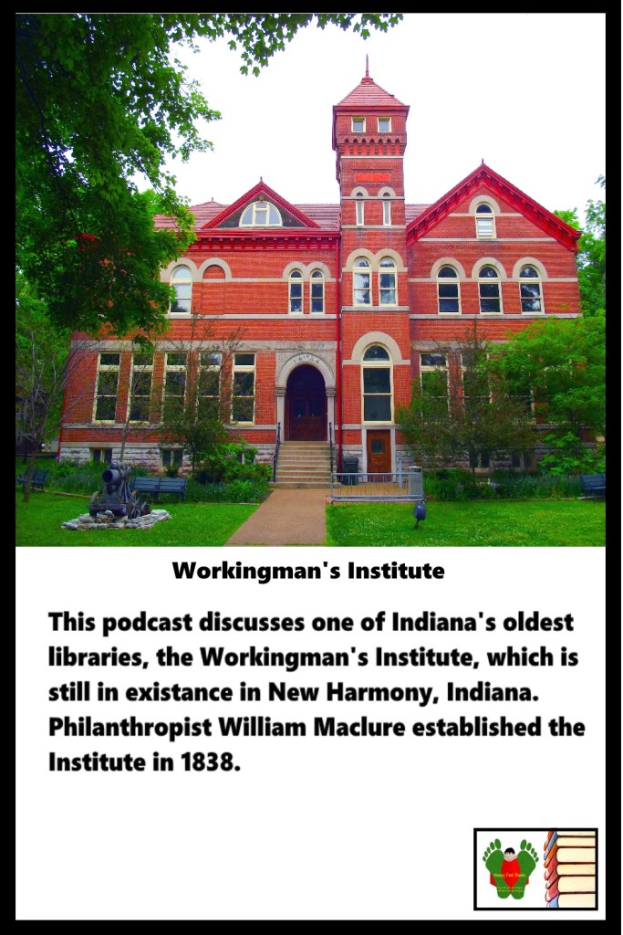 This podcast discusses one of Indiana’s oldest libraries, the Workingman’s Institute, which is still in existence in New Harmony, Indiana.