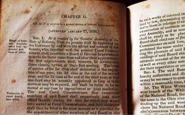 Touted as a major economic boon, the Mammoth Internal Improvement Act Of 1836 provided the mechanism for funding a number of vital transportation venues for the developing state of Indiana. Unfortunately, the Panic of 1837 squashed the economy and the Act quickly proved to be a financial disaster for Indiana.