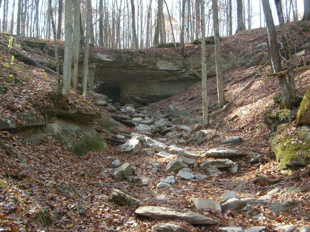 Located on the northeastern corner of McCormick’s Creek State Park, the 214 acre Preserve includes Wolf Cave and nearby Twin Bridges. The Youth Camp is nearby, accessible from Trail 5, which is the only trail in the Preserve. The hilly slopes have a thick forest cover of red oak, white ash, tulip, sugar maple, and hackberry. The valleys contain mostly sycamore, red elm, and black walnut. Hikers will find mostly chinquapin, red, and white oak, as well as shagbark hickory on the higher elevations. Visitors will also find and abundance of mosses, liverworts, and ferns.