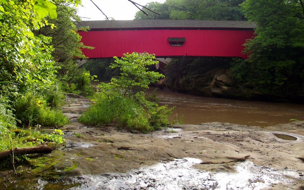 Trail 4 is a loop trail that proceeds northwest past the Lusk home and continues on to a junction with Trail 3. On this hike we will focus on the section that goes along the creek. From the covered bridge the trail proceeds west and reaches the Coal Mine. Trail 4 branches off Trail 3 near the Punch Bowl. It proceeds northeast through a pretty valley, then loops south to an intersection with Trail 8. The two trails run together until they branch just before they reach the Lusk Home. Trail 4 proceeds past the Lusk home and turns to follow Sugar Creek at the Narrows Covered Bridge. Trail 4 intersects Trail 8 at the coal mine.