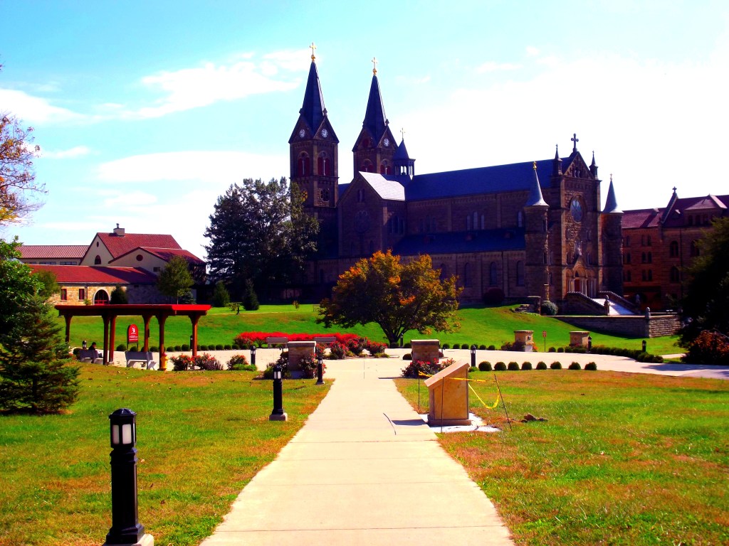 The monks named the Abbey after St. Meinrad, a Ninth Century monk that lived in Einsiedeln, Switzerland. Known as the “Martyr of Hospitality,” he lived as a hermit and solicited gifts from wealthy patrons, which he passed on to the poor. Thieves killed him in 861 to get the gifts he kept at his shrine. The monks that established St. Meinrads began teaching school classes shortly after their arrival. By 1861 the expanded their offerings to include courses in theology and philosophy. Today is one of two arch abbeys in the United States and nine in the world.