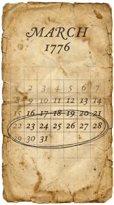 Greetings, today we visit the week of March 22 – 28, 1776.